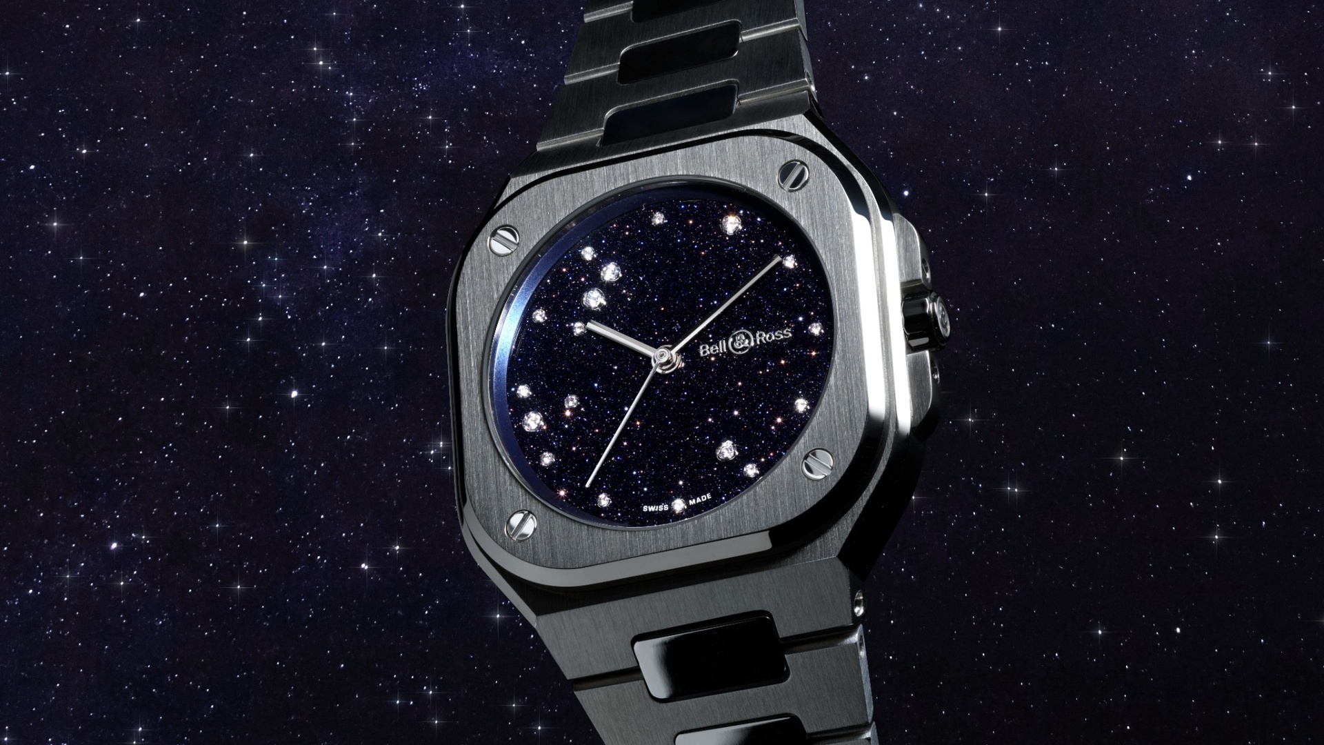 El Bell & Ross BR-05 Blue Diamond Eagle 36 mm reproduce la constelación del Águila con 18 diamantes sobre una carátula de aventurina azul.