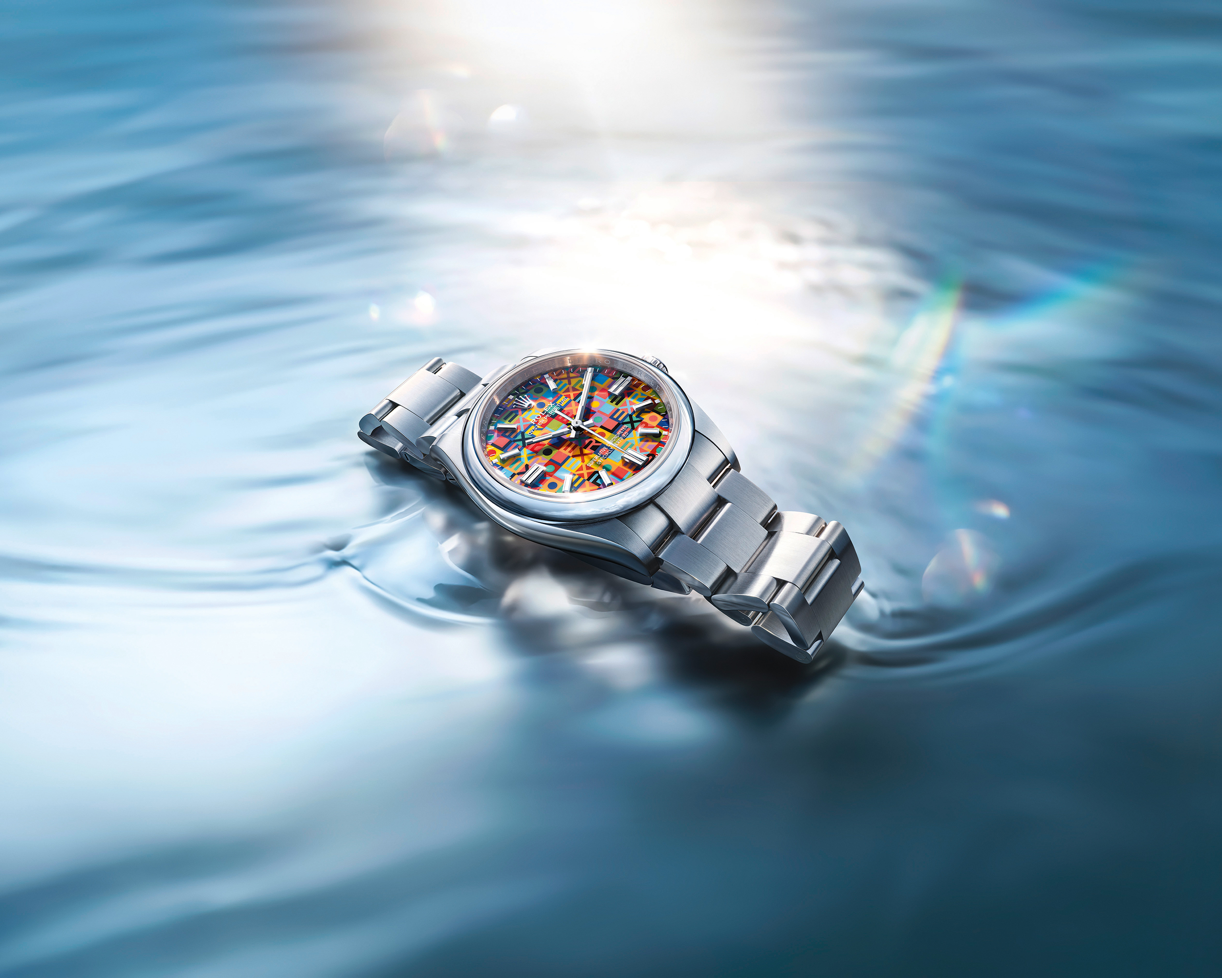 Un estallido de color toma la esfera del Oyster Perpetual 36 con el motivo Jubilee reinterpretado en clave gráfica