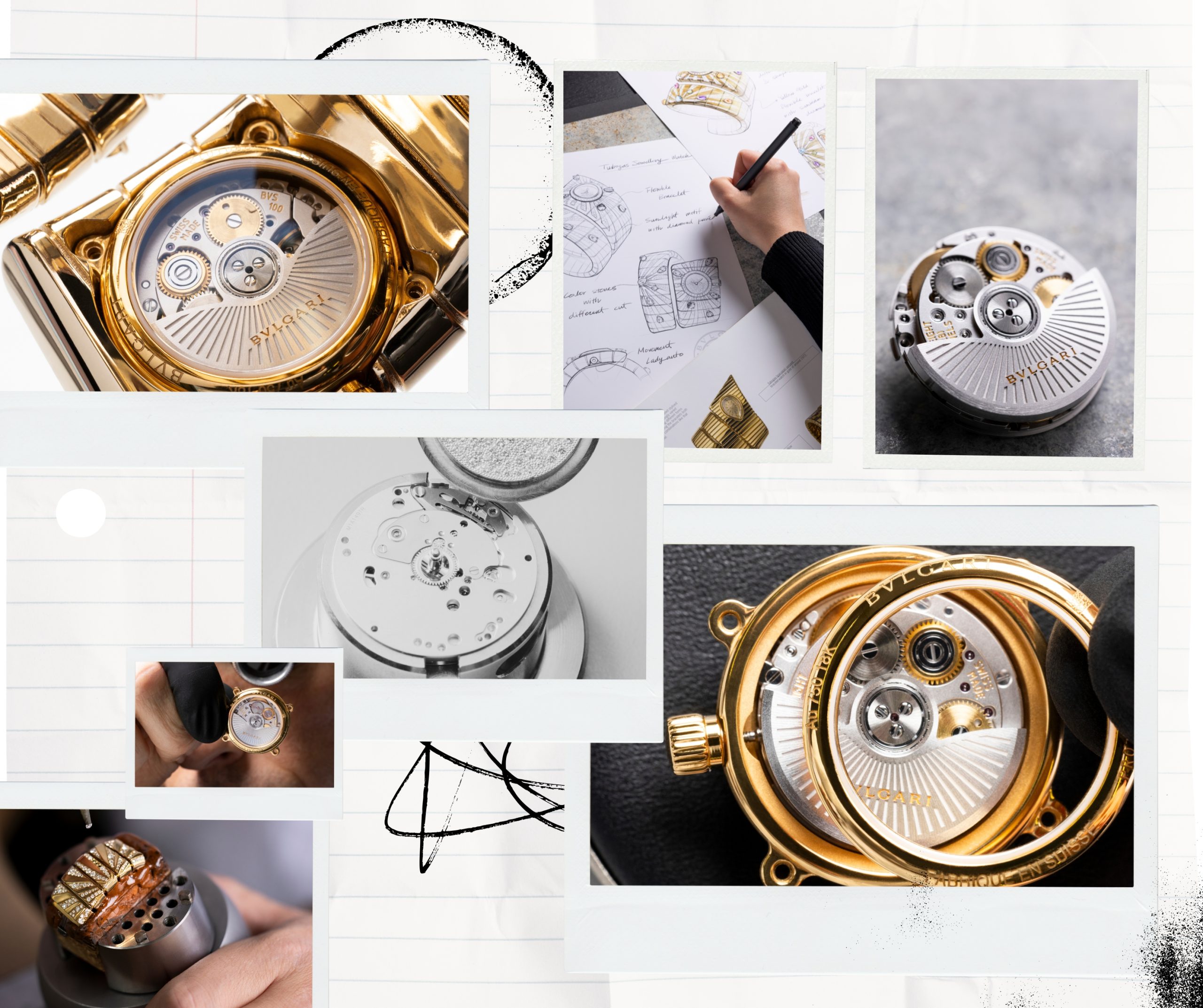La masa oscilante decorada con el logotipo de Bvlgari y motivo de rayos de sol refuerza la idea de que la mecánica no es un elemento oculto, sino parte del objeto. El fondo de caja transparente permite apreciar esta arquitectura interna, subrayando el equilibrio entre ingeniería suiza y sensibilidad estética italiana.