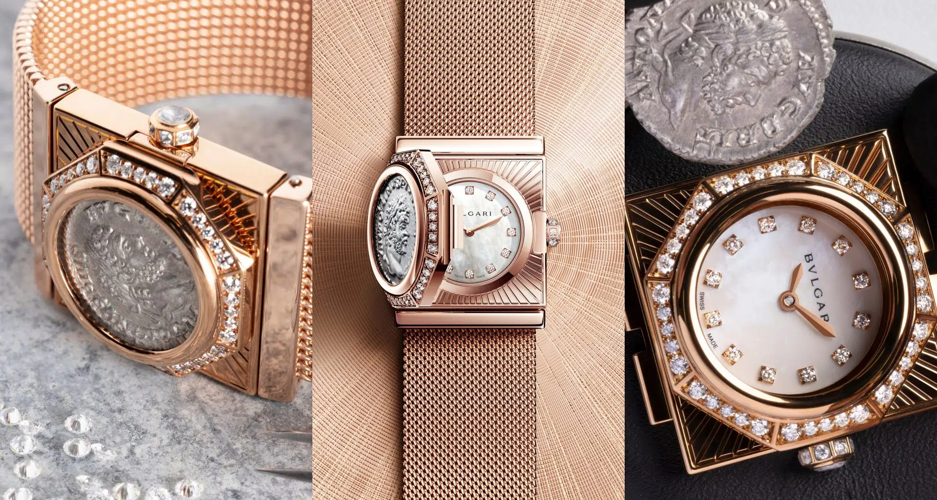 El Maglia Milanese Monete de Bvlgari combina una moneda romana auténtica, malla milanesa y el calibre Piccolissimo, el más pequeño del mundo.