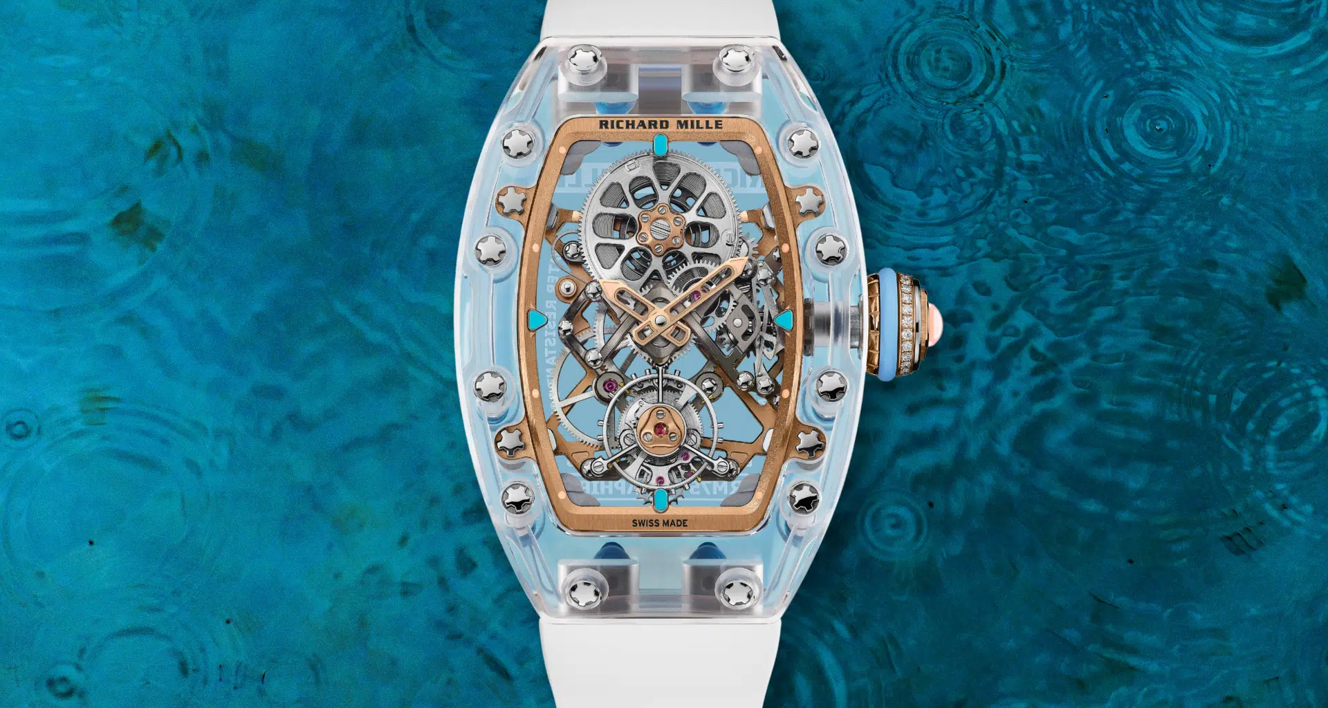 La colección RM 07-02 Automatic Sapphire de Richard Mille fusiona innovación y estética con movimientos esqueleto y cajas de zafiro coloreado.