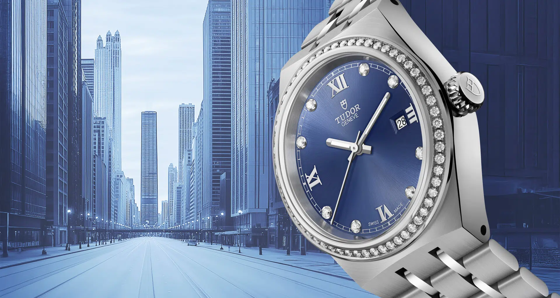 El TUDOR Royal se reinventa con una carátula azul engastada en diamantes. Un reloj que combina herencia, precisión y elegancia deportiva bajo el espíritu Born to Dare.