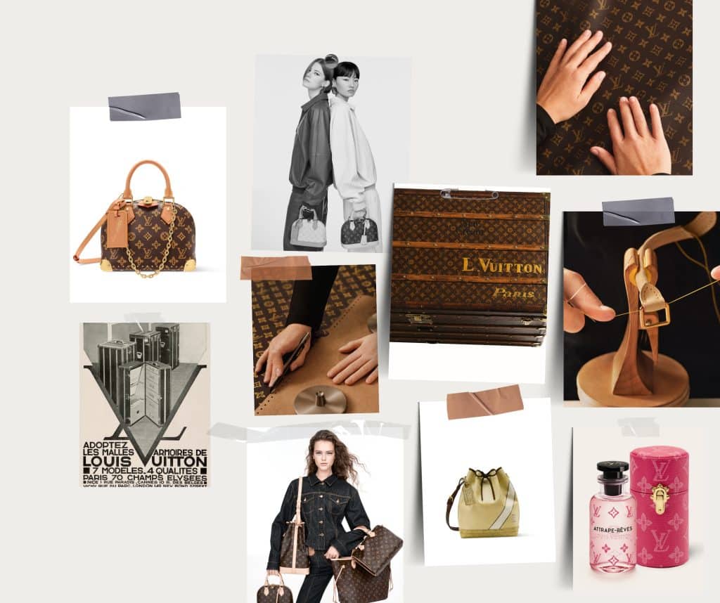 Desde los primeros baúles de tapa plana hasta la evolución hacia bolsas flexibles, el Monograma acompañó el desarrollo del viaje moderno. Técnicas como el pochoir aplicado a mano y, más tarde, la introducción del canvas flexible en 1959 reforzaron su vínculo con la innovación.