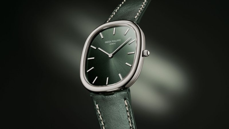 El Patek Philippe Golden Ellipse regresa en tamaño mediano con carátula verde oliva. Es uno de los relojes más finos de la colección actual: 5.9 mm.