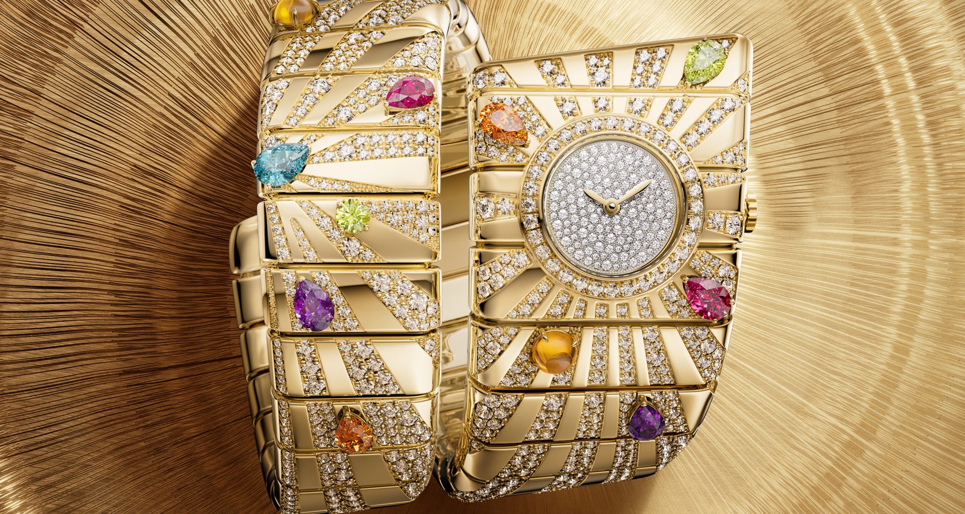 El Tubogas Manchette de Bvlgari reinterpreta un diseño setentero con oro, gemas de color y el calibre Lady Solotempo Automatic.