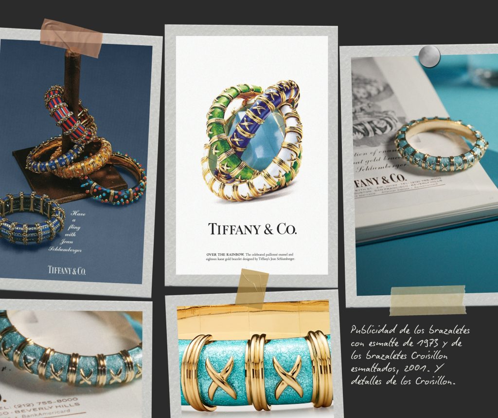 En ocasiones anteriores, la relojería de Tiffany & Co. ha reinterpretado a Schlumberger por medio de piezas como Bird on a Rock o Rope. Pero esta vez, la referencia son los icónicos brazaletes de esmalte paillonné que el diseñador creó en 1962. Con esta inspiración, el Tiffany & Co. Enamel Watch debuta en tres versiones producidas en cantidades limitadas que toman como punto de partida la colección de joyería Croisillon, reconocible por su patrón de cruces en oro amarillo que se entrelazan.