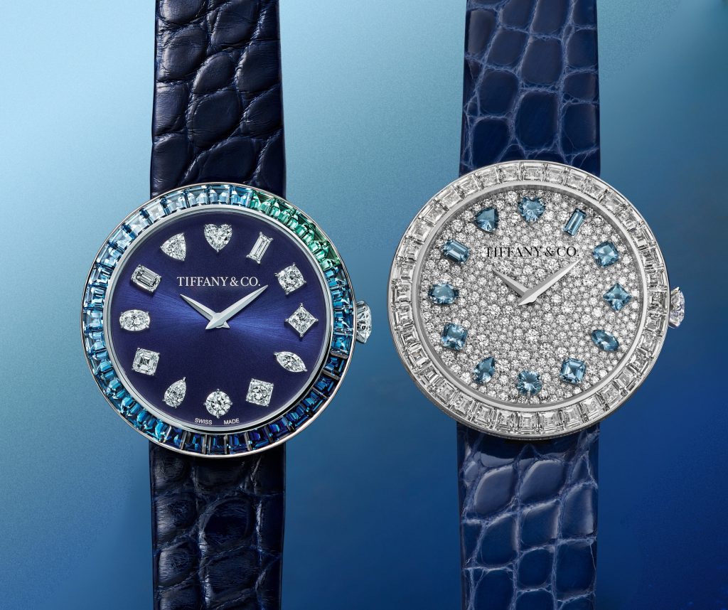 Eternity Baguette introduce por primera vez un bisel de piedras talla baguette. De este modo, el gesto funciona como una referencia directa y bien medida al anillo Eternity, uno de los símbolos más claros del universo Tiffany. El modelo se presenta en dos versiones, Diamond y Blue Gradient. En ambos casos, la idea es la misma: dejar que la gema marque el ritmo visual del reloj. Aquí, el bisel no actúa como un marco decorativo. Por el contrario, se convierte en una línea continua que envuelve la carátula y define la personalidad de la pieza.