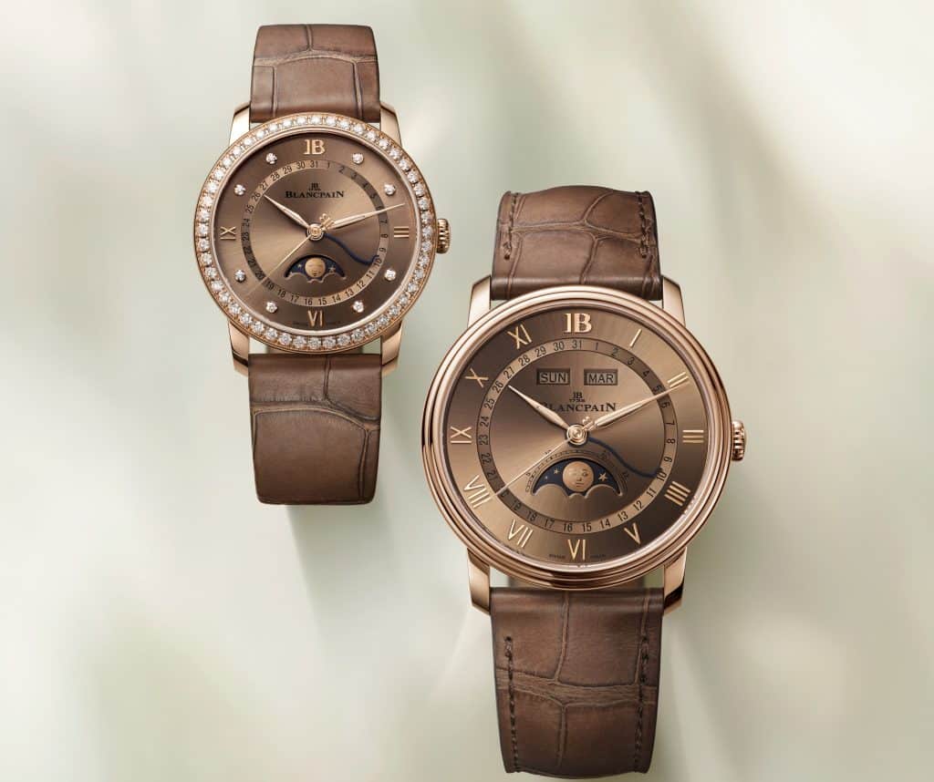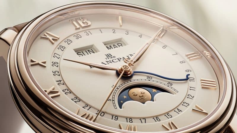 La colección Villeret Golden Hour reinterpreta la complicación más poética de Blancpain: la fase lunar, emblema que acompañó su renacimiento tras la crisis del cuarzo. Compuesta por 16 modelos inéditos, la línea se presenta en oro rojo y acero, en dos tamaños —40 y 33.2 mm— y tres configuraciones: tres manecillas con fecha, calendario completo con fases de luna y calendario fases de luna, con versiones engastadas con diamantes en el bisel.
